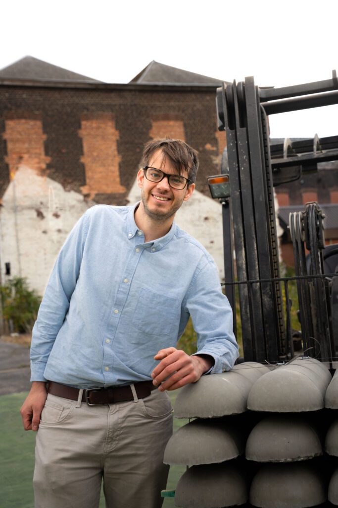 Michiel leerde zwavelbeton kennen via een vorige werkgever, Thio Materials, die er voornamelijk rioleringsbuizen en dwarsliggers voor het spoor mee maakt. “Zij gebruiken een patent van Shell om het beton duurzaam te produceren”, vertelt Michiel. “Toen ik later in een andere sector ging werken, bleef ik terugdenken aan de innovatieve opportuniteiten van zwavelbeton. Ik was gefascineerd door de vele voordelen van het materiaal, en had een sterk vermoeden dat ik een eigen recept kon maken dat buiten het patent van Shell valt. Toen ik dat idee besprak met mijn studiegenoot Yannick, besloten we om het te proberen.”
